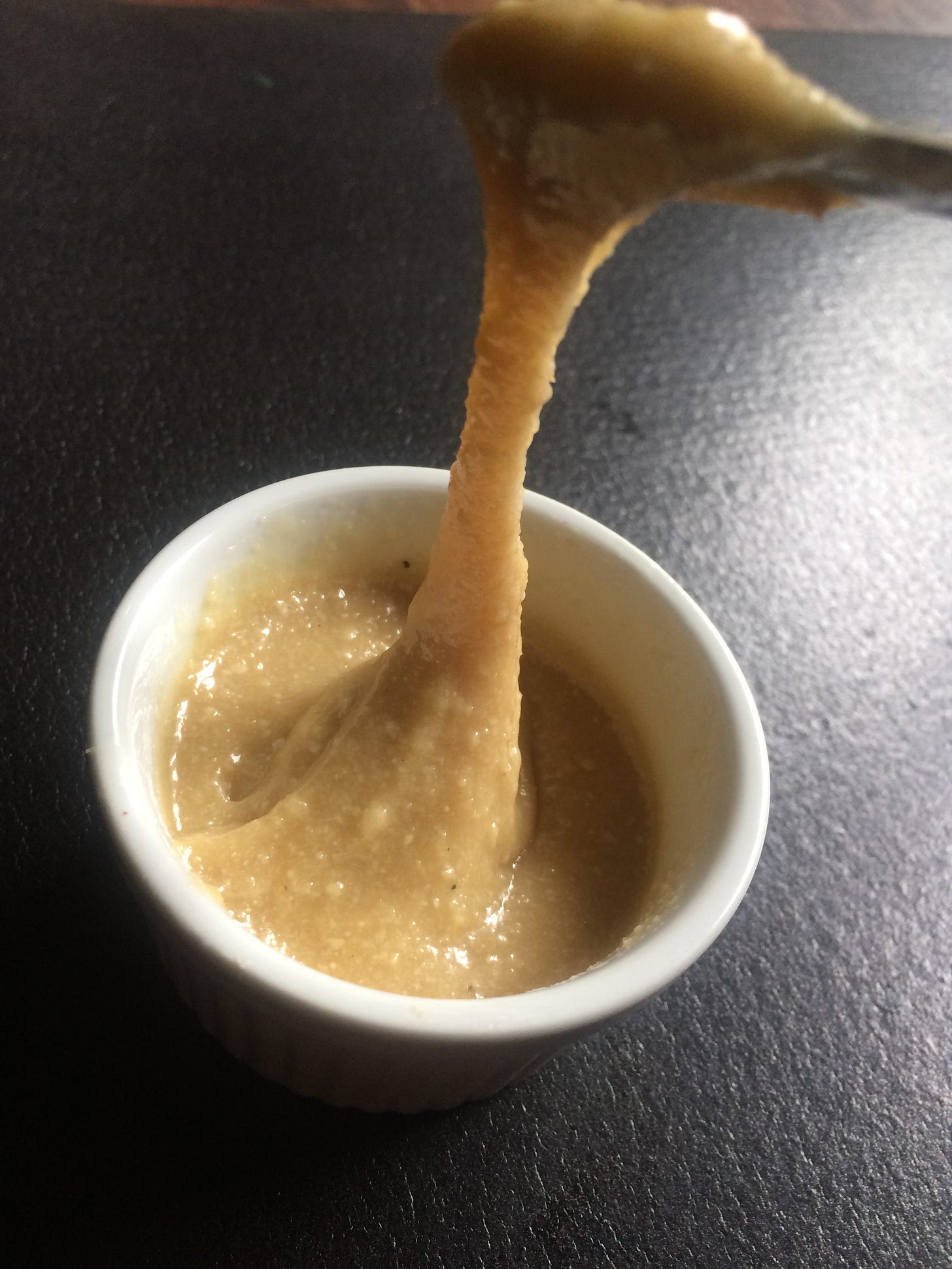 First make sesame butter: Roast 1 lb sesame seeds in the oven on 350 for 10 mins, remove from heat and allow to cool. Blend in a food processor until smooth with a pinch of salt. Add equal parts of the sesame butter and raw honey and mix well. Enjoy on its own or add to ice cream, brownies, pancakes, yogurt, etc. Store in a jar in the refrigerator. It’s quite loose at room temperature and solid in the fridge.
